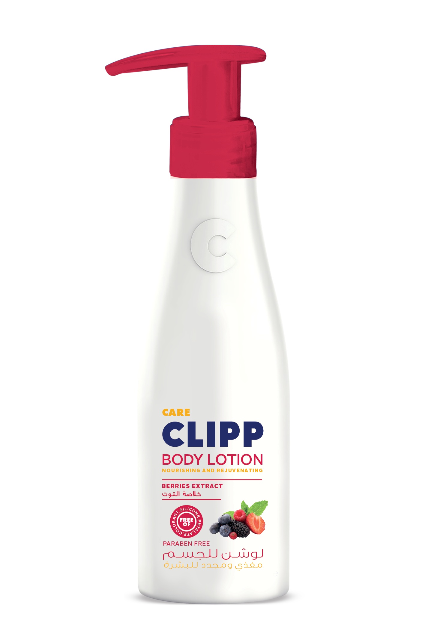 For dry skin, Hydrating formula, Rich in Berries Extract, Fresh Fruity fragrance, Fast spreading and non-sticky formula, Free of Paraben, Phthalate, Silicone and Colorant.