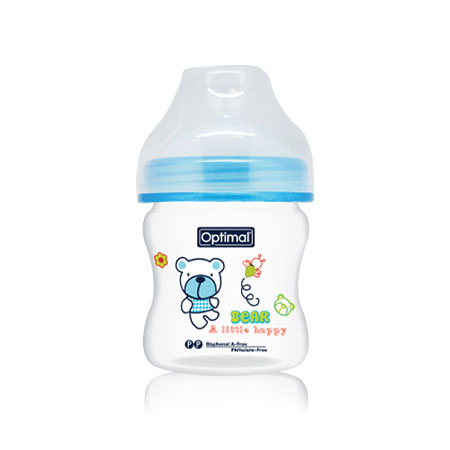 A non-toxic feeding bottle (0m+) with a silicone nipple and an extra wide neck to reduce colic. Dishwasher-safe/ Sterilizer-safe.