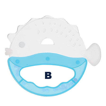 A non-toxic silicone teether (4m+) specially designed to ease the pain and/or soothe your baby.