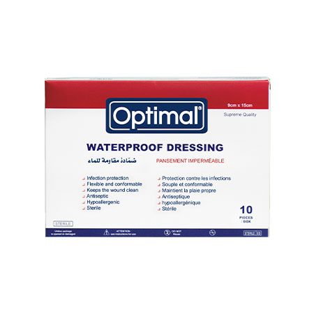A waterproof plaster (pack of 10) that protects wounds from infection and dirt. It is sterile, hypoallergenic and flexible.