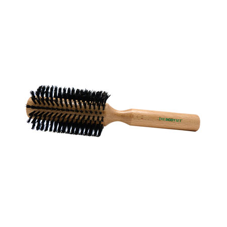 A big round hairdryer brush molded from high-quality beech wood and studded with wild boar bristles to guarantee a smooth and volumized outcome, while being gentle on hair and scalp. Ideal for medium and long hair.